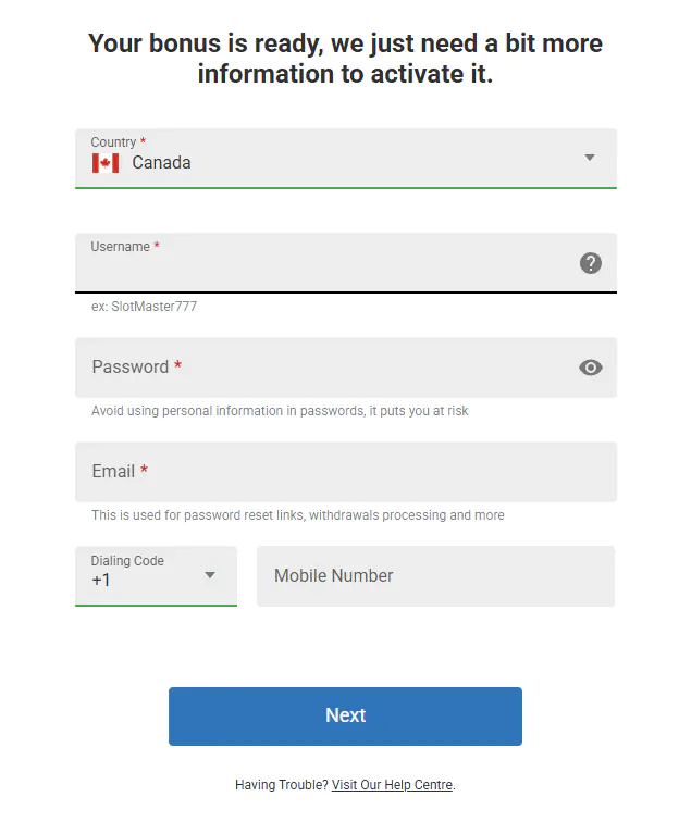 - Enter your account details such as email address, password, and preferred currency (CAD).